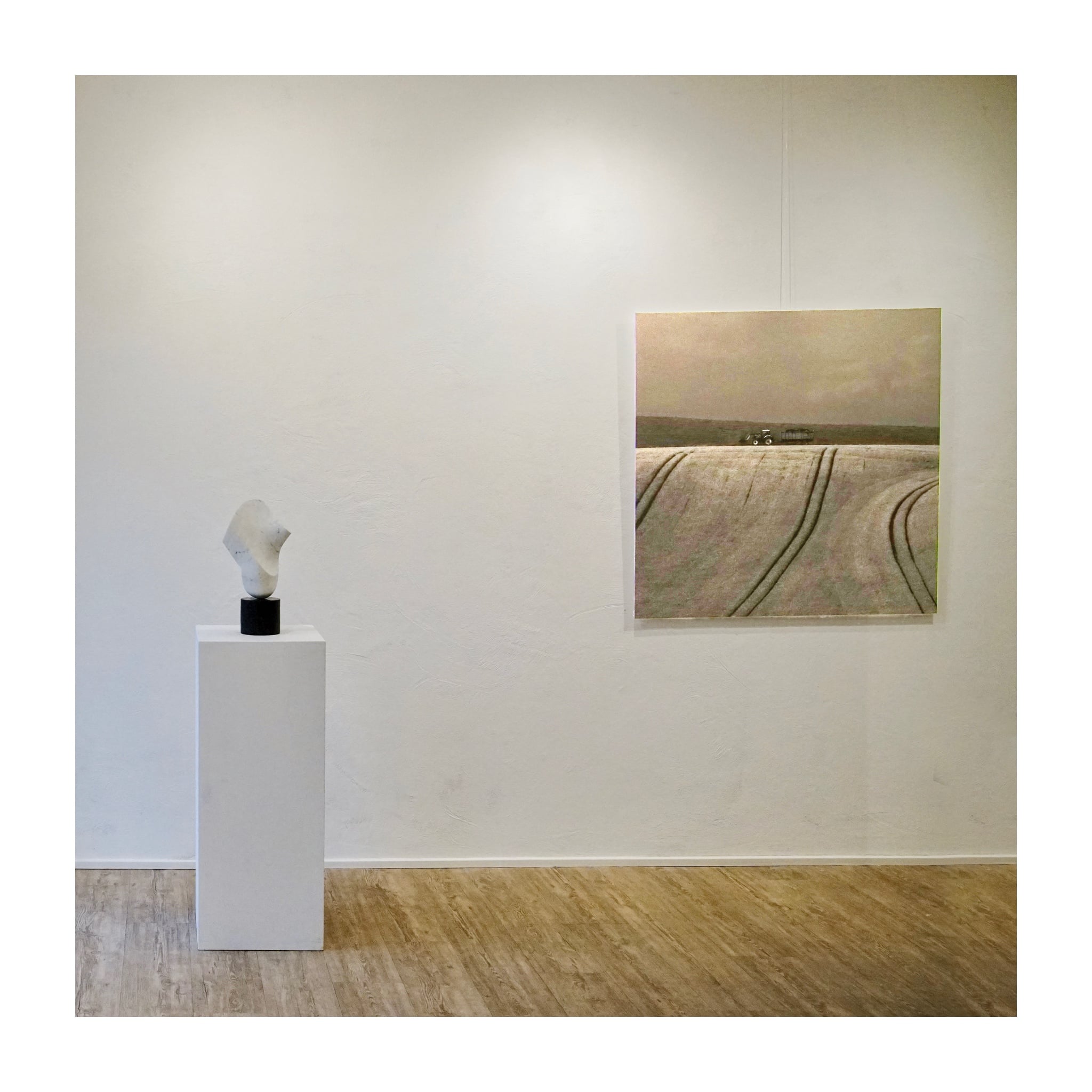 Værkerne vises i dialog med Michael Abels egne fotografiske værker, der i denne udstilling udelukkende består af monocrome landskabsbilleder..